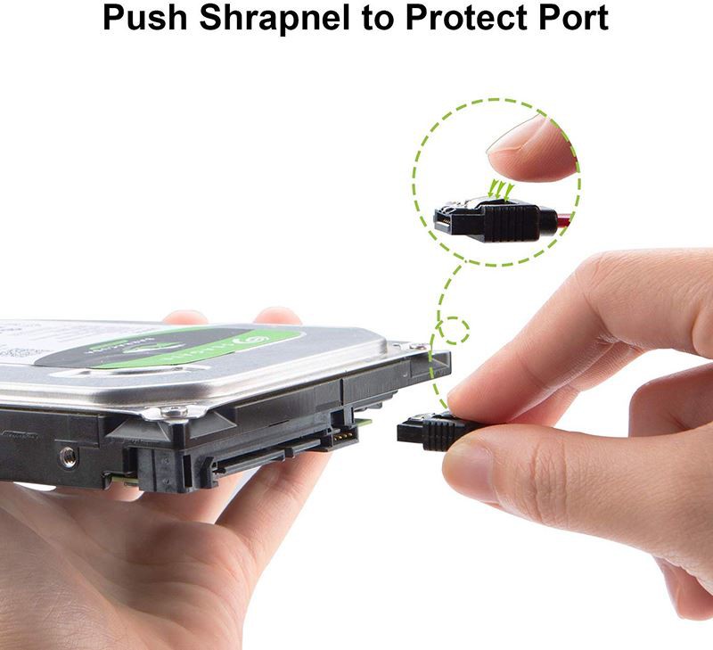 Starte made Down angle SATA 7 pin to Left angle SATA 3.0 Cable with latch for internal Serial ATA hard drives and DVD drives, this 90 degree SATA 7 pin angled Cable features a left angel SATA 7 pin connector with latch on one side, a down angle 7 pin SATA Connector on other side, SATA 7 Pin 90 Degree Latching Cable is specifically designed to connect motherboards and host controllers to internal Serial ATA hard drives and DVD drives.